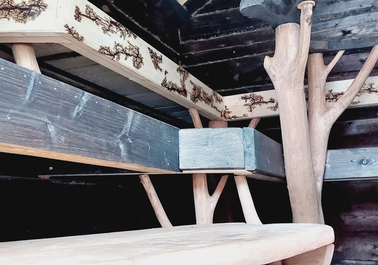 Suomenselkä Designilla yksityiskohdat valmistetaan perinteisiä käsityökaluja käyttäen. Huolellinen ja tarkka työ takaa ihastuttavan lopputuloksen, ja käsityön kauneutta voi ihailla myös lauteilta käsin.