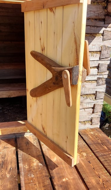 In Suomenselkä Design every sauna is considered to be alive and breathing with an individual spirit. During the craftwork it is of utter importance to cultivate the right atmosphere and soul in the air as a new sauna is being born and starting a journey of its own. Our Saunas are designed to function as a space of joy, peace and warmth for every seeker of serenity who enters through the rustic, handcraft door.